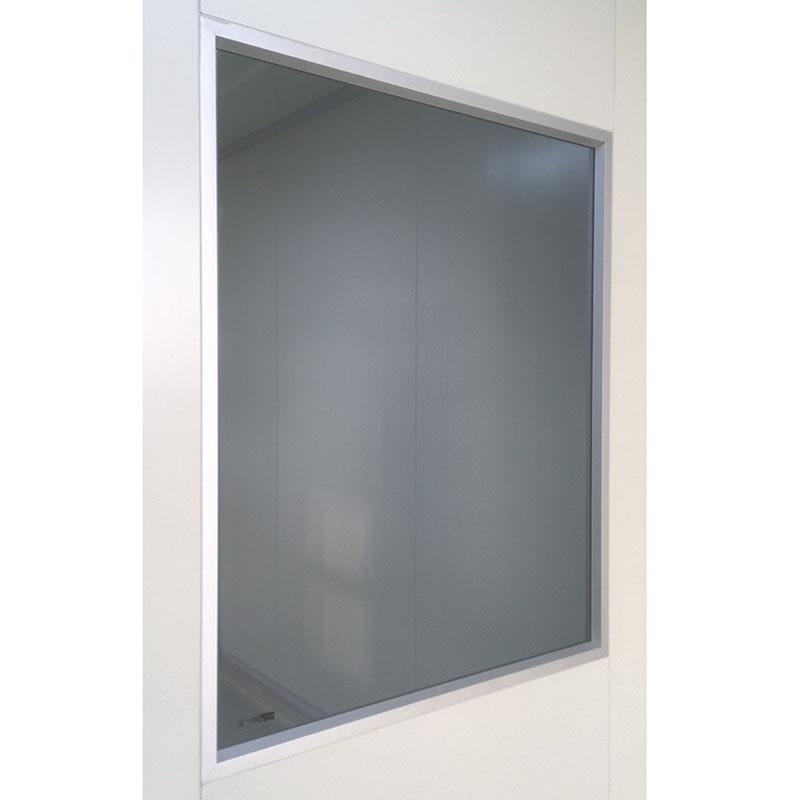 La ventana de vidrio simple para sala limpia consta de un marco de aluminio y una sola capa de vidrio templado. Debido a la transparencia del vidrio, se suele utilizar como ventana de observación. Al tener una sola capa de vidrio, el aislamiento térmico de las ventanas no es especialmente bueno. Se utiliza comúnmente en tabiques divisorios de dos habitaciones con temperaturas similares.