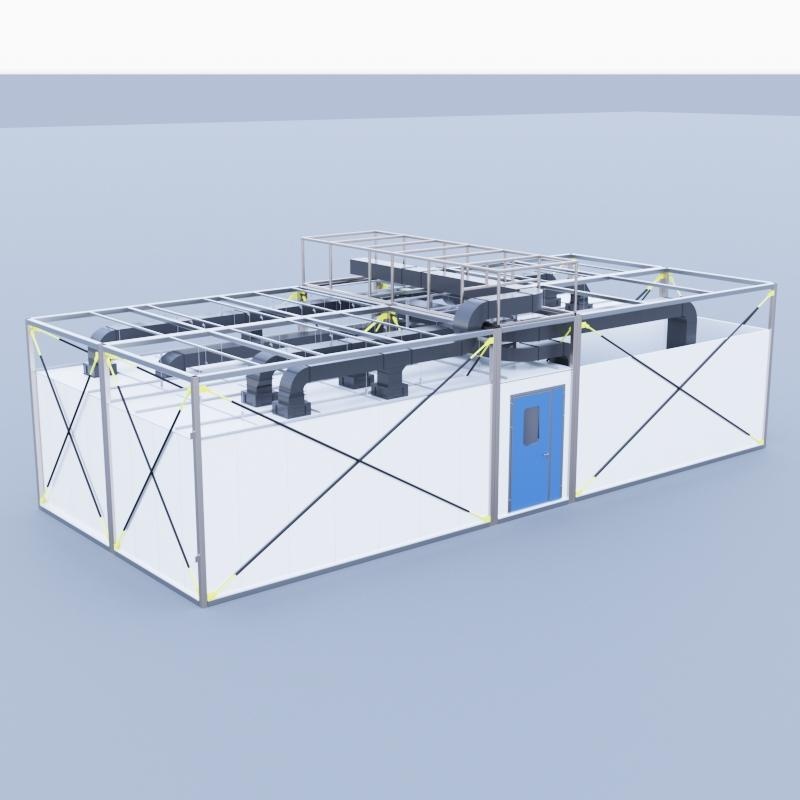 1) El laboratorio modular se compone de múltiples módulos fijos, incluyendo la estructura de mantenimiento, la estructura del techo, las tuberías, el sistema eléctrico y el sistema de ventilación. El laboratorio modular se prefabrica y ensambla en fábrica. Una vez completadas las conexiones eléctricas y de otros sistemas, se puede realizar una prueba de funcionamiento y los clientes pueden aceptar los productos antes de recibirlos.